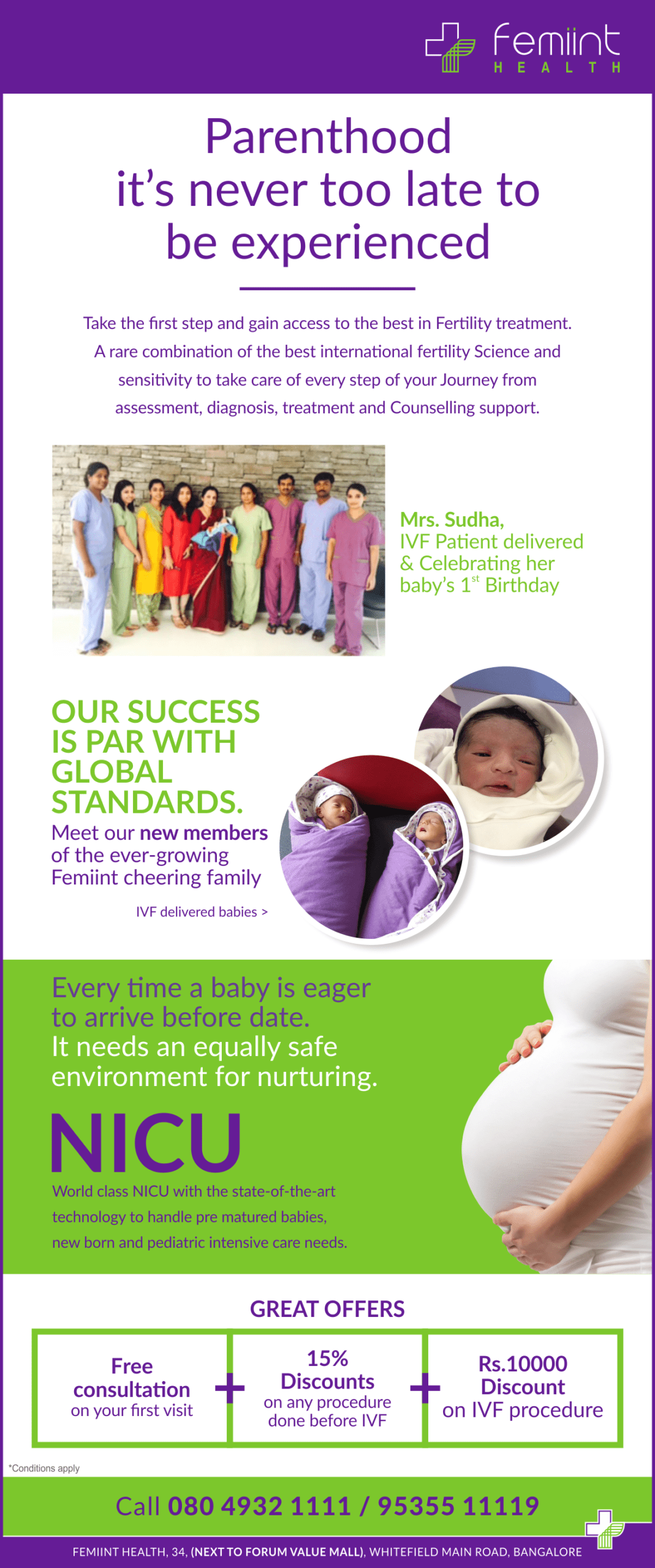 Femiint Health, a pioneer in women’s healthcare, excels in Maternity, Fertility, and Neonatal care, emphasizing specialized services. The hospital stands out through distinctive branding and communication, focusing on “Women care the way women care.” This unique approach resonates with